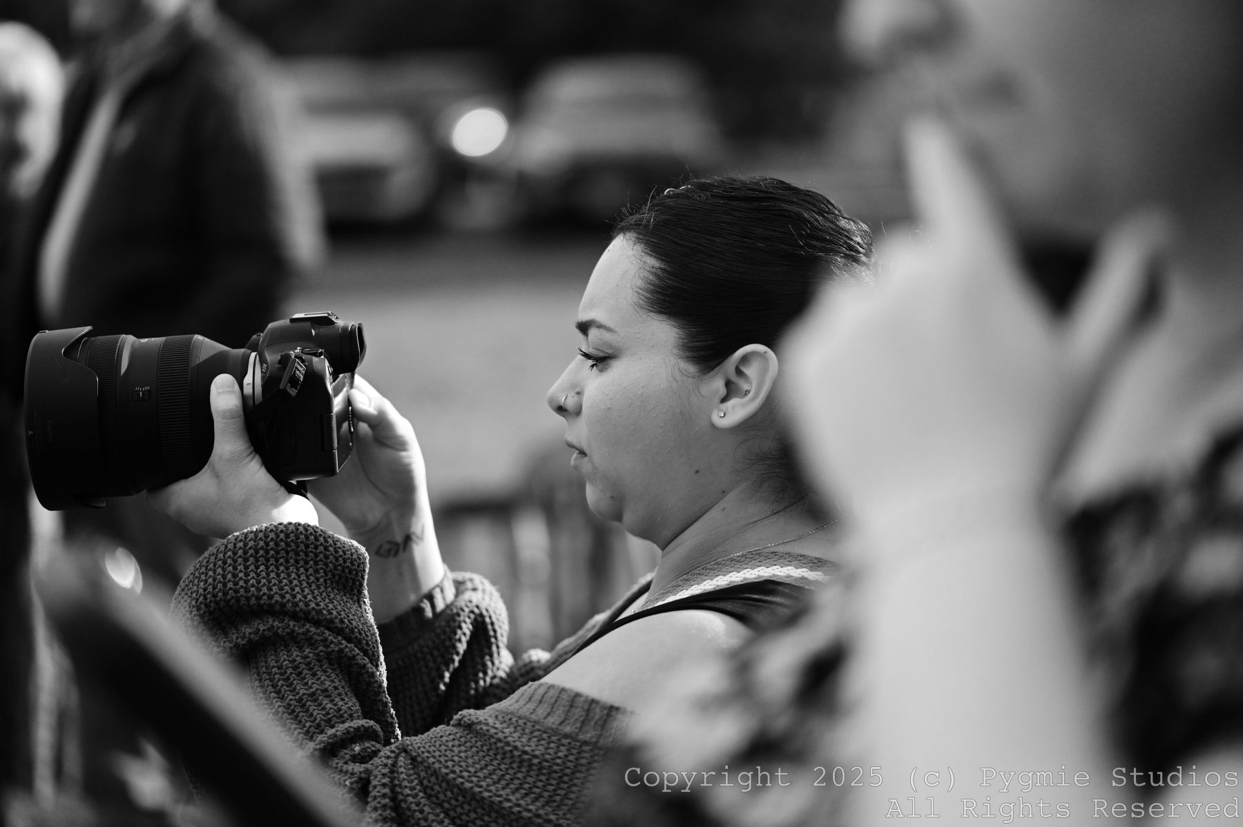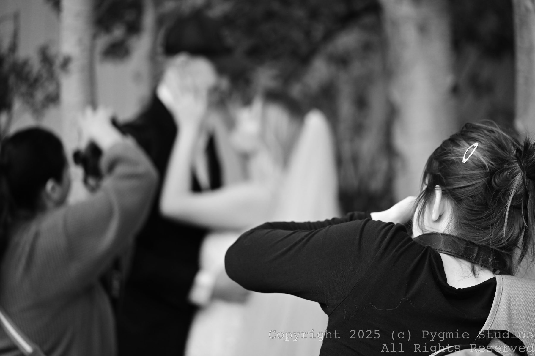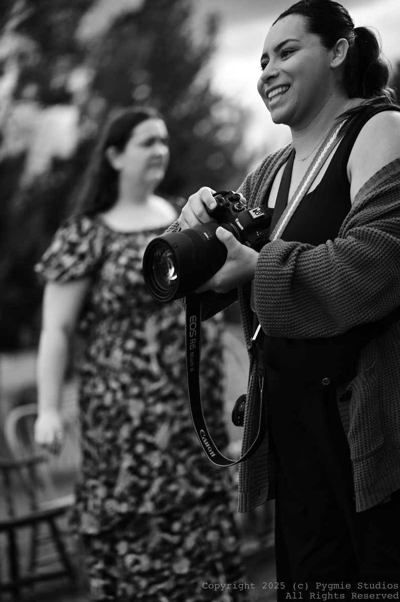 One of my favourite “accidents” is to run into photographers in the real world and take pictures of them doing their thing (while I do mine). This last weekend I was fortunate enough to be able to shoot at my nephews wedding even though there was already a professional photographer there with their acolyte. They were kind enough to not only let me take photos of the wedding, but sneak photos of them both in the artistic process. Got at least one banger out of this!
